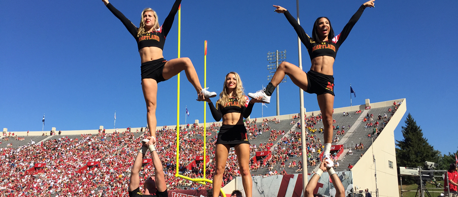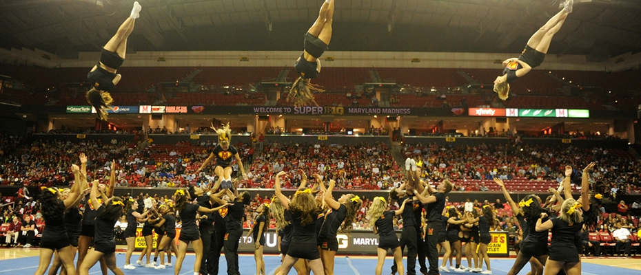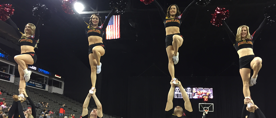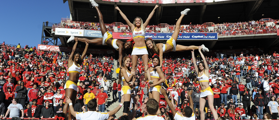 The University of Maryland Cheerleaders support the Terrapin football team (at home, away and bowl games), as well as the men’s and women’s basketball teams (at home games and post season B1G and NCAA tournaments) as well as other UMD sporting events upon request. In addition, selected team members compete once a year at the UCA Collegiate National Cheerleading Championship in Orlando, FL. The University of Maryland Cheerleading team consists of both all-girl co-ed team members.