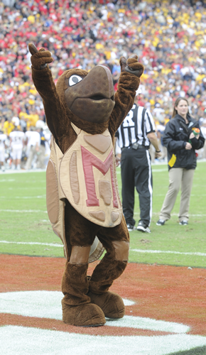 Testudo, the diamondback terrapin, is the official mascot of the University of Maryland and the core of Maryland’s spirit and pride! Testudo supports the Department of Intercollegiate Athletics and all of the University’s varsity sports teams.
